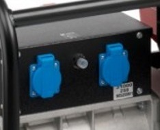 ![]() | Панель управління: інтуїтивно проста, доступна недосвідченому користувачеві. На ній виведені: кнопка запуску генератора, основні показники роботи, розетки - 1 шт на 16 ампер та 1 шт на 32 ампер, АВР - автоматичний регулятор напруги, запобіжник на розетки, заземлення. |