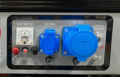![]() | Панель управління: інтуїтивно проста, доступна недосвідченому користувачеві. На ній виведені: кнопка запуску генератора, основні показники роботи (вольтметр), розетки - 2 шт. 16 ампер та 32 ампер, клеми на 12В для зарядки акумуляторів, АВР - автоматичний регулятор напруги, запобіжник на розетки, заземлення. |