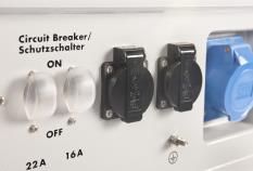 Панель управління: інтуїтивно проста, доступна недосвідченому користувачеві. На ній виведені: розетки - 2 шт. на 16 ампер i 1шт. на 32 ампера, AVR - автоматичний регулятор напруги, запобіжник на розетки, заземлення.