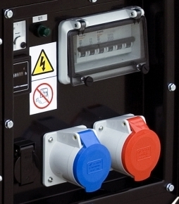 ![]() | Панель управління: інтуїтивно проста, доступна недосвідченому користувачеві. На ній виведені: основні індикатори роботи (вольтметр, лiчильник вiдпрацьованного часы (мотогодини)), розетки - 1 шт. на 16 ампер i 1 шт. на 32 ампер, AVR - автоматичний регулятор напруги, запобіжник на розетки, заземлення. |
