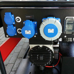 ![]() | Панель управління: інтуїтивно проста, доступна недосвідченому користувачеві. На ній виведені: основні показники роботи, лічильник відпрацьованого часу (мотогодини), розетки - 2 шт. по 16 ампер, 1 розетка на 32 Ампера, 1 розетка 63 А, АВР - автоматичний регулятор напруги, запобіжник на розетки, заземлення. |