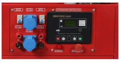 ![]() | Панель управління: інтуїтивно проста, доступна недосвідченому користувачеві. На ній виведені: кнопка запуску генератора, основні показники роботи, розетки - 3 шт. (16 А 230 В, 32 А, 63 А), АВР - автоматичний регулятор напруги, запобіжник на розетки. |