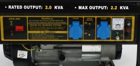 ![]() | Панель управління: інтуїтивно проста, доступна недосвідченому користувачеві. На ній виведені: кнопка запуску генератора, основні індикатори роботи (вольтметр), розетки - 2 шт по 16 ампер, клеми на 12В для зарядки акумуляторів, АВР - автоматичний регулятор напруги, запобіжник на розетки, заземлення. |