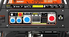 ![]() | Панель управління: інтуїтивно проста, доступна недосвідченому користувачеві. На ній виведені: кнопка запуску генератора, основні індикатори роботи, розетки 2 шт по 16 ампер та 2 шт на 32 ампера, клеми на 12В для зарядки акумуляторів, АВР - автоматичний регулятор напруги, запобіжник на розетки, заземлення. |
