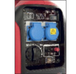 ![]() | Панель управління: інтуїтивно проста, доступна недосвідченому користувачеві. На ній виведені: кнопка запуску генератора, основні індикатори роботи, розетка - 2 шт на 16 ампер, запобіжник на розетки, заземлення. |