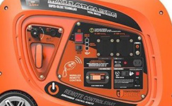 ![]() | Панель управління: інтуїтивно проста, доступна недосвідченому користувачеві. На ній виведені: кнопка запуску генератора, розетки - 2 шт на 16 ампер, клеми на 12В для зарядки акумуляторів, запобіжник на розетки, заземлення. |