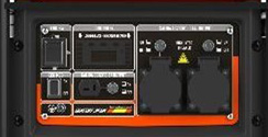 ![]() | Панель управління: інтуїтивно проста, доступна недосвідченому користувачеві. На ній виведені: кнопка запуску генератора, розетки - 2 шт на 16 ампер, клеми на 12В для зарядки акумуляторів, запобіжник на розетки, заземлення. |