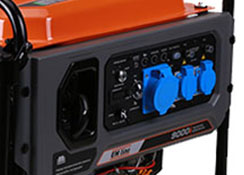 ![]() | Панель управління: інтуїтивно проста, доступна недосвідченому користувачеві. На ній виведені: кнопка запуску генератора, розетки, запобіжник на розетку, заземлення. |