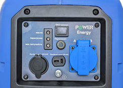 ![]() | Панель управління: інтуїтивно проста, доступна недосвідченому користувачеві. На ній виведені: кнопка запуску генератора, розетки - 1 шт на 16 ампер, клеми на 12В для зарядки акумуляторів, АВР - автоматичний регулятор напруги, запобіжник на розетки, заземлення. |