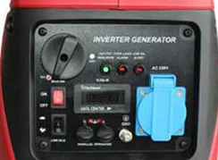 ![]() | Панель управління: інтуїтивно проста, доступна недосвідченому користувачеві. На ній виведені: кнопка запуску генератора, основні індикатори роботи, розетки - 1 шт на 16 ампер, клеми на 12В для зарядки акумуляторiв, запобіжник на розетки, заземлення. |