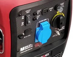 ![]() | Панель управління: інтуїтивно проста, доступна недосвідченому користувачеві. На ній виведені: кнопка запуску генератора, основні індикатори роботи, розетки - 1 шт на 16 ампер, запобіжник на розетку, заземлення. |