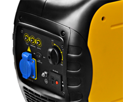 | Панель управління: інтуїтивно проста, доступна недосвідченому користувачеві. На ній виведені: кнопка запуску генератора, основні показники роботи, розетки - 1 шт. по 16 ампер, АВР - автоматичний регулятор напруги, запобіжник на розетки. |