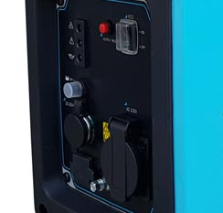 ![]() | Панель управління: інтуїтивно проста, доступна недосвідченому користувачеві. На ній виведені: кнопка запуску генератора, основні індикатори роботи, розетки - 1 шт на 16 ампер, клеми на 12В для зарядки акумуляторiв, запобіжник на розетки, заземлення. |