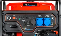 ![]() | Панель управління: інтуїтивно проста, доступна недосвідченому користувачеві. На неї виведені кнопка запуску генератора, основні індикатори роботи (вольтметр, лічильник пропрацьованого часу (мотогодин)), розетки - 1 шт. на 16 ампер та 2 шт. по 32 ампери, клеми на 12В для зарядки акумуляторів, запобіжник на розетки, заземлення. |