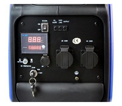 ![]() | Панель управління: інтуїтивно проста, доступна недосвідченому користувачеві. На ній виведені: кнопка запуску генератора, основні показники роботи (лічильник відпрацьованого часу (мотогодини)), розетки - 2 шт. по 16 ампер, клеми на 12В для зарядки акумуляторів, АВР - автоматичний регулятор напруги, запобіжник на розетки. |