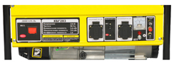 ![]() | Панель управління: інтуїтивно проста, доступна недосвідченому користувачеві. На ній виведені: кнопка запуску генератора, основні показники роботи (вольтметр), розетки - 2 шт., клеми на 12В для зарядки акумуляторів, АВР - автоматичний регулятор напруги, запобіжник на розетки, заземлення. |