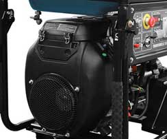 ![]() | Панель управління Інтуїтивно проста, доступна недосвідченому користувачеві. На ній виведені: кнопка запуску генератора, основні показники роботи (лічильник відпрацьованого часу (мотогодини)), розетки - 1 шт. по 32 ампера, 1 розетка на 63 Ампер, клеми на 12В для зарядки акумуляторів, АВР - автоматичний регулятор напруги, запобіжник на розетки, заземлення. |