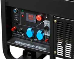![]() | Панель управління: інтуїтивно проста, доступна недосвідченому користувачеві. На ній виведені: кнопка запуску генератора, основні індикатори роботи (лічильник відпрацьованого часу (мотогодини)), розетки - 2 шт , клеми на 12В для зарядки акумуляторiв, запобіжник на розетки, заземлення. |