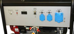 ![]() | Панель управління: інтуїтивно проста, доступна недосвідченому користувачеві. На ній виведені: кнопка запуску генератора, основні індикатори роботи (мультиметр), розетки - 3 шт, АВР - автоматичний регулятор напруги, запобіжник на розетки, заземлення. |