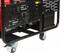 ![]() | Рама: в основі конструкції лежить трубчаста рама, яка забезпечує захист агрегату генератора, зручне перенесення і просту установку на будь-яку поверхню, в тому числі й нерівну. Дана модель оснащена колесами і ручками, що дозволяє легко переміщувати генератор по Вашій ділянці або об'єкті. |