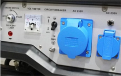 ![]() | Панель управління: інтуїтивно проста, доступна недосвідченому користувачеві. На ній виведені: кнопка запуску генератора, основні індикатори роботи (вольтметр), розетки - 2 шт (16 А та 32 А), АВР - автоматичний регулятор напруги, клеми на 12В для зарядки акумуляторів, запобіжник на розетки, заземлення. |