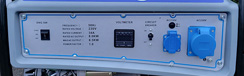 ![]() | Панель управління: інтуїтивно проста, доступна недосвідченому користувачеві. На ній виведені: кнопка запуску генератора, основні індикатори роботи (вольтметр, лічильник відпрацьованого часу (мотогодини)), розетки - 2 шт, АВР - автоматичний регулятор напруги, запобіжник на розетки, заземлення. |