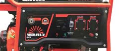 ![]() | Панель управління: інтуїтивно проста, доступна недосвідченому користувачеві. На ній виведені: кнопка запуску генератора, основні індикатори роботи (вольтметр, лічильник мотогодин), розетки - 2 шт на 16 ампер, АВР - автоматичний регулятор напруги, запобіжник на розетки. |