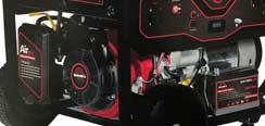 - Довгий ресурс компонентів: генератор зібраний на спеціалізованому заводі з дотриманням світових стандартів якості. Рама має антикорозійне покриття. Довговічність силового агрегату забезпечує система повітряного охолодження.