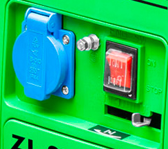 ![]() | Панель управління Інтуїтивно проста, доступна недосвідченому користувачеві. На ній виведені: кнопка запуску генератора, розетки - 1 шт. по 16 ампер, запобіжник на розетки, заземлення. |