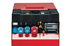 ![]() | Панель управління: інтуїтивно проста, доступна недосвідченому користувачеві. На ній виведені: кнопка запуску генератора, основні індикатори роботи (вольтметр), розетки по 16 ампер, АВР - автоматичний регулятор напруги, запобіжник на розетки, заземлення. |