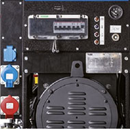 ![]() | Панель управління На дисплей виводятся всі основні показники роботи генератора: частота, оберти двигуна, температура двигуна, напруга, споживане навантаження, помилки, кількість запусків, сумарно напрацьовані мотогодини і багато іншого. Кнопка: старт, стоп, режим АВР. |