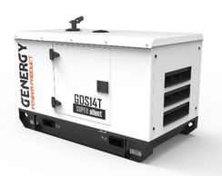 Модель стаціонарного генератора Genergy GDS14T, яка працює на дизпаливі, призначена для використання в якості резервного або основного джерела перемінного струму для забезпечення подачі електроенергії (лікарні, фабрики, виробничої лінії, заправочної станції, котельні, СТО), а також на будівництвах і в побутових потреб.