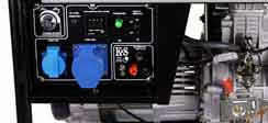 ![]() | Панель управління: інтуїтивно проста, доступна недосвідченому користувачеві. На ній виведені: кнопка запуску генератора, основнi показники роботи (вольтметр, лiчильник вiдпрацьованого часу (мотогодини)), розетки - 1 шт на 16 ампер та 1 шт на 32 ампер, клеми на 12В для зарядки акумуляторiв, АВР - автоматичний регулятор напруги, запобіжник на розетки, заземлення. |