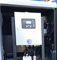 ![]() | Панель управління: інтуїтивно проста, доступна недосвідченому користувачеві. На ній виведені: кнопка запуску генератора, основні індикатори роботи (лічильник відпрацьованого часу (мотогодини)), розетки, АВР - автоматичний регулятор напруги, запобіжник на розетки, заземлення. |