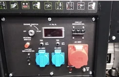 ![]() | Панель управління: інтуїтивно проста, доступна недосвідченому користувачеві. На ній виведені: кнопка запуску генератора, основні показники роботи (вольтметр, лічильник відпрацьованого часу (мотогодини)), розетки - 3 шт., АВР - автоматичний регулятор напруги, запобіжник на розетки, заземлення. |
