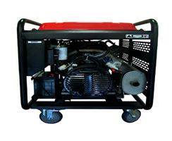 - Довгий ресурс компонентів: генератор зібраний на спеціалізованому заводі з дотриманням світових стандартів якості. Рама має антикорозійне покриття. Довговічність силового агрегату забезпечує система повітряного охолодження.