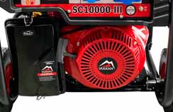 - Незалежність від виду палива: генератор Vulkan SC10000-III можна експлуатувати в стаціонарних та польових умовах. При підключенні генератора до побутового газопроводу (стаціонарний варіант), він забезпечить регулярний або безперервний режим роботи. При мобільному (польовий варіант експлуатації) використанні його можна заправляти бензином.
