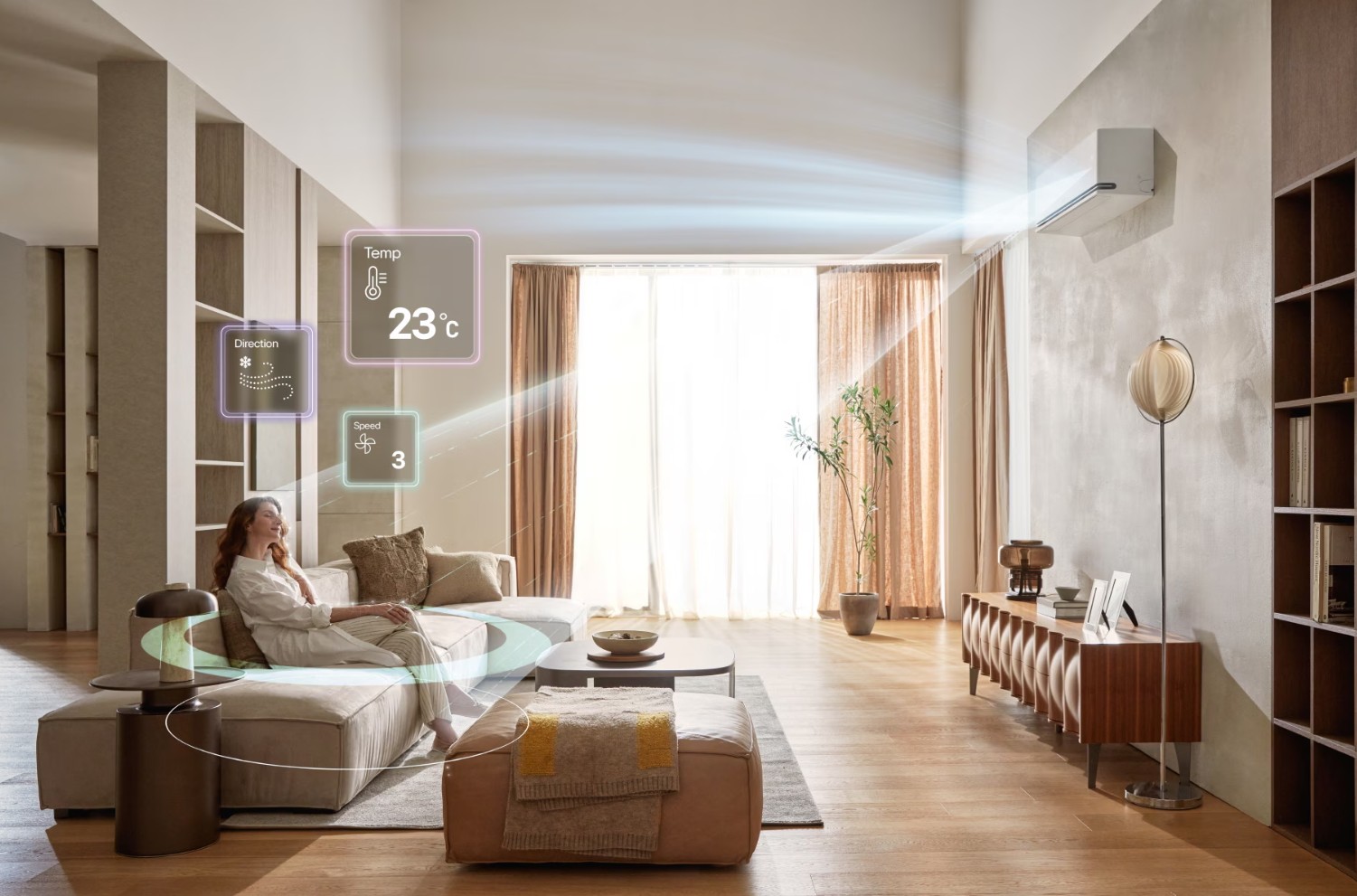 Новий Ai Air Fit Deluxe пропонує оптимізоване кондиціювання повітря, адаптоване до переваг кожного користувача. Система, що працює на базі "AI DUAL Inverter™", визначає температуру навколишнього середовища в приміщенні та інтелектуально регулює температуру, напрям і швидкість повітряного потоку, забезпечуючи постійний комфорт. Режим AI Air включає датчик виявлення людини (Human Detecting Sensor), який точно відстежує розташування користувача та аналізує його звички за допомогою просторового аналізу через додаток "ThinQ". Це дозволяє створити найефективніший шлях повітряного потоку.Функція автоматично регулює налаштування для підтримки комфортної атмосфери у приміщенні, забезпечуючи спрямований потік повітря для швидкого охолодження або обігріву. Коли температура в кімнаті досягає ідеального рівня, система переходить у режим "Soft Air" із непрямим повітряним потоком для створення м'якого та приємного мікроклімату.