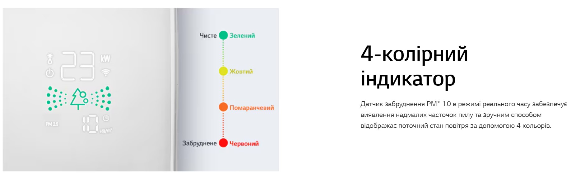 Новий LG PuriCare UV з очищувачем повітря містить систему очищення 2-в-1 (охолодження та фільтрація повітря), яка може фільтрувати дрібні частинки пилу, мікроби та забруднення повітря, такі як PM1.0. Датчик PM 1.0 забезпечує виявлення наддрібного пилу в реальному часі та зручним способом відображає поточний стан повітря за допомогою 4 кольорів.. Це означає, що у вашому домі завжди очищене та свіже повітря. Ця стінка ідеально підходить для розміщення як у вітальні, так і в спальні. Завдяки низці бажаних налаштувань повітря ніколи не спрямовується безпосередньо на людей, а все приміщення комфортно забезпечується свіжим повітрям.