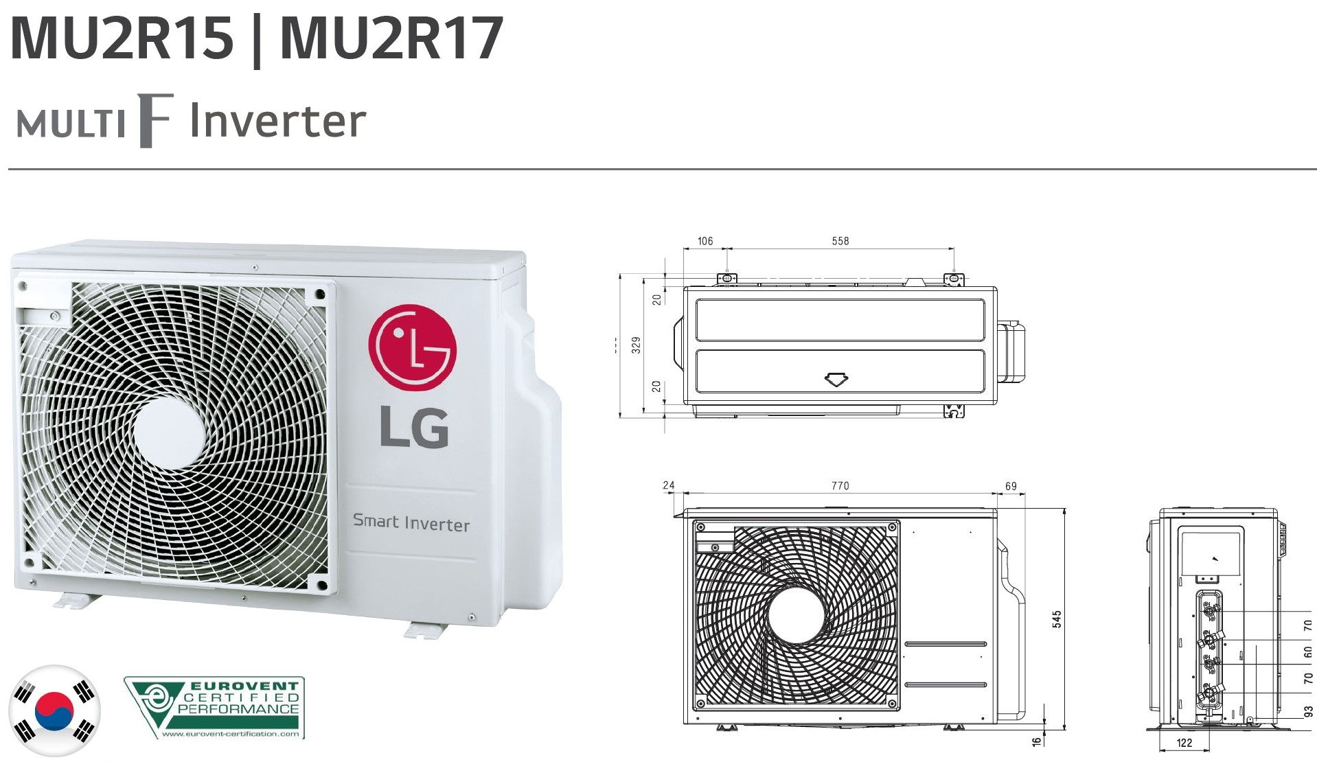 Зовнішній блок мульти-спліт системи LG Multi F MU2R15.UL0 протестований на кращому у світі випробувальному обладнанні та відповідає всім стандартам, сертифікатам та рекомендаціям компетентних органів галузі, включаючи Eurovent.