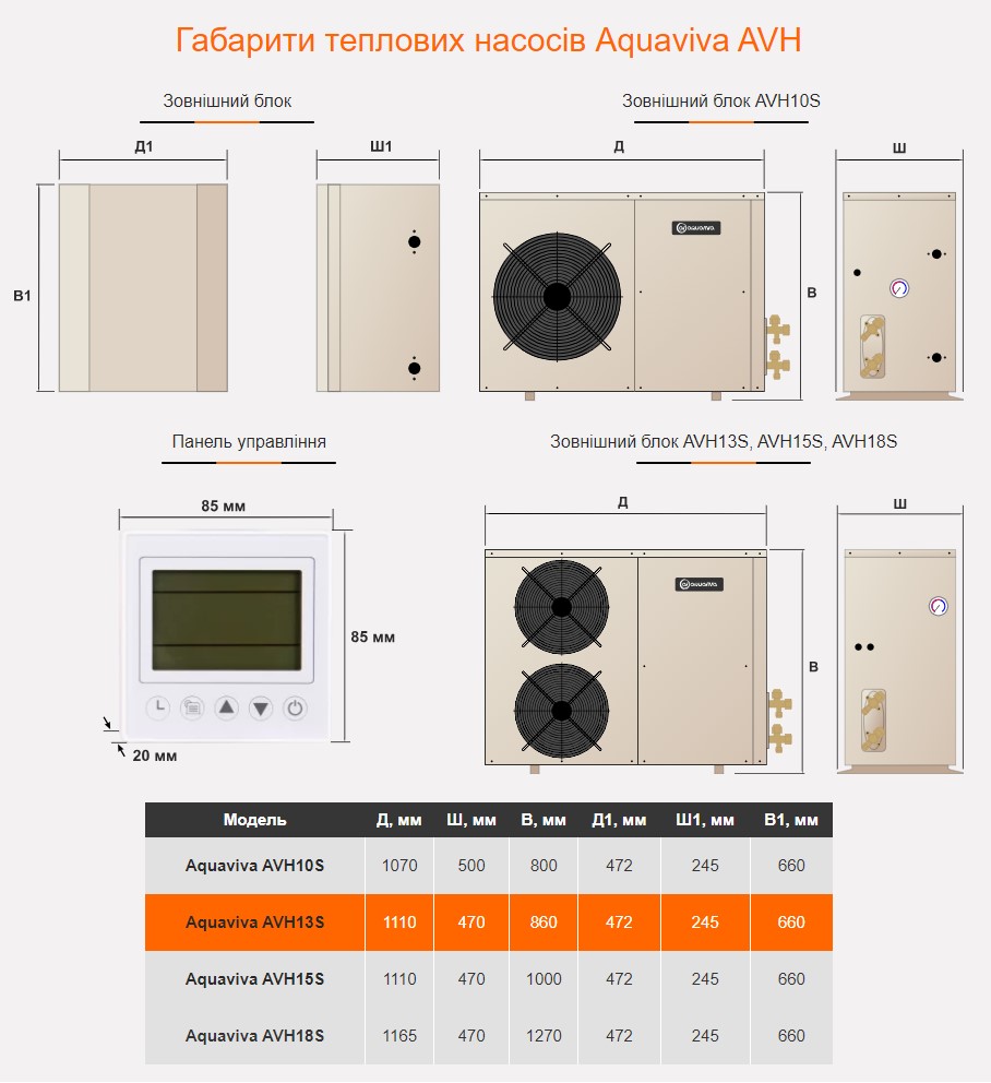 Особливості теплового насосу повітря-вода Aquaviva AVH13S (13 кВт)