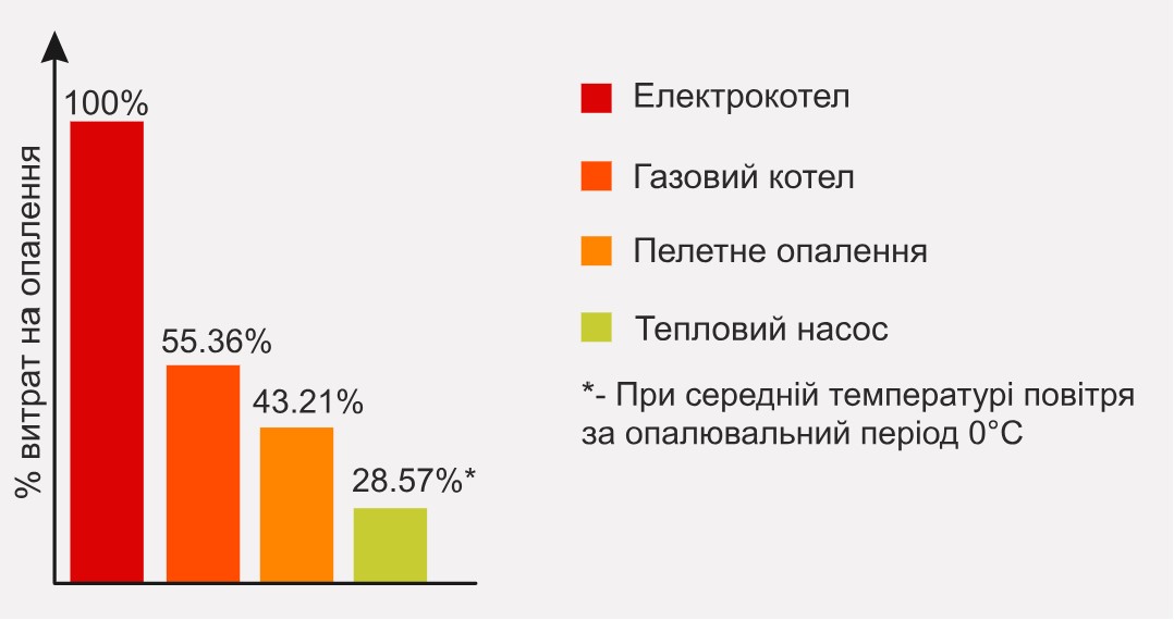 Такий принцип роботи насоса в 4 рази ефективніший, ніж робота електрокотла, і в 2 рази ефективніший, ніж робота газового котла.