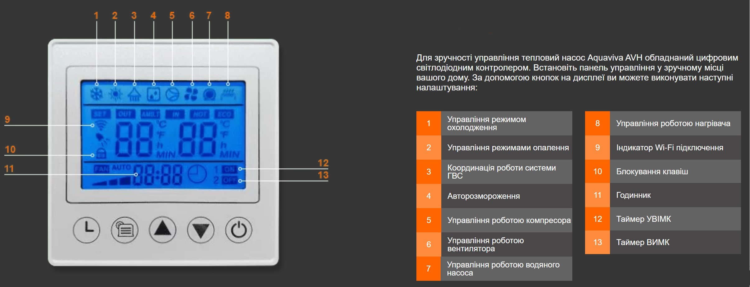 Тепловий насос для будинку Aquaviva має 5 різних режимів роботи