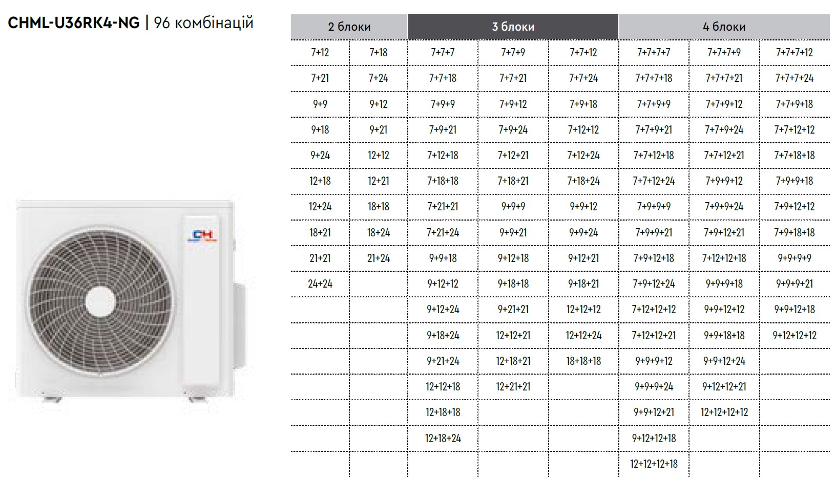 | Кількість внутрішніх блоків, шт: | 2-4 |